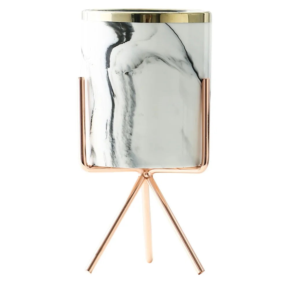 Featuring a striking marble pattern and delicate rose gold or silver accents, this vase is the epitome of sophistication. Whether adorning your living room, bedroom, or office space, its sleek silhouette and refined detailing are sure to leave a lasting impression.